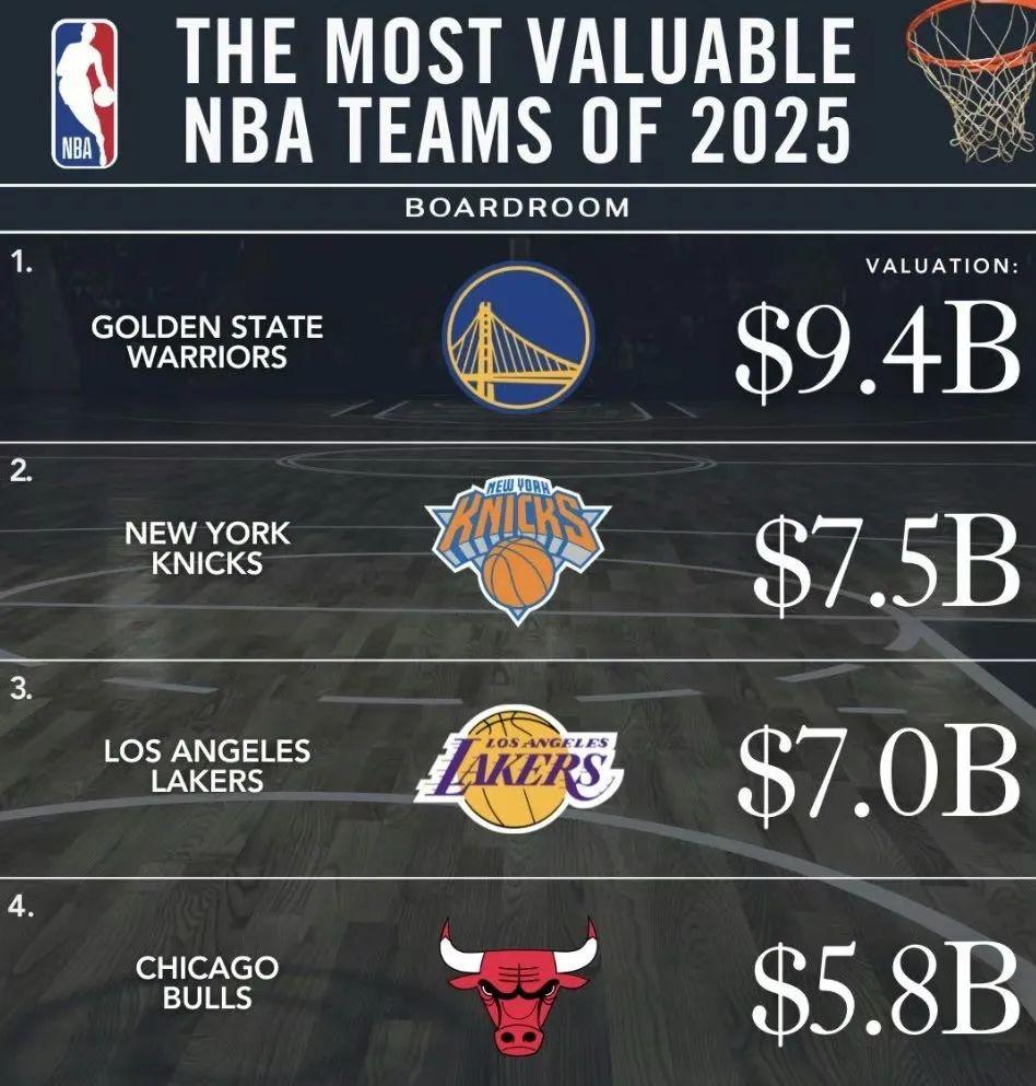 按今年各队最新估值,湖人是70亿