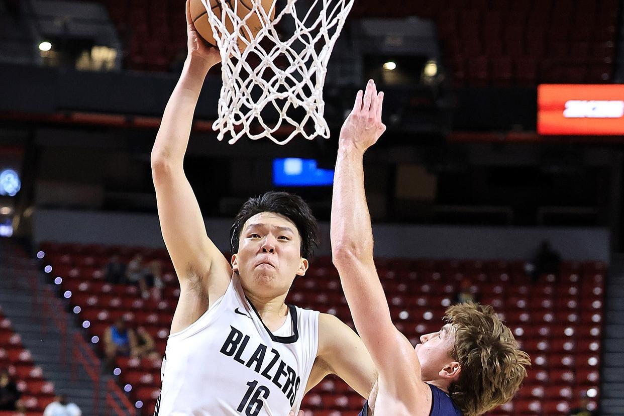 第二次则出现在末节开拓者队追分阶段,杨瀚森送上飞身补扣。